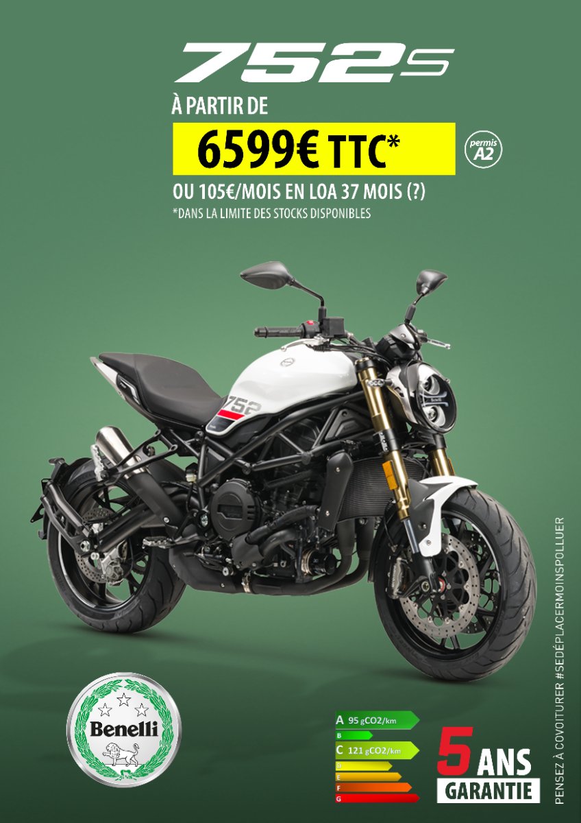 Benelli 752S à 6.599€ au lieu de 7499 € - hors frais de mise en route & d’immatriculation à partir du 13 février 2025.
