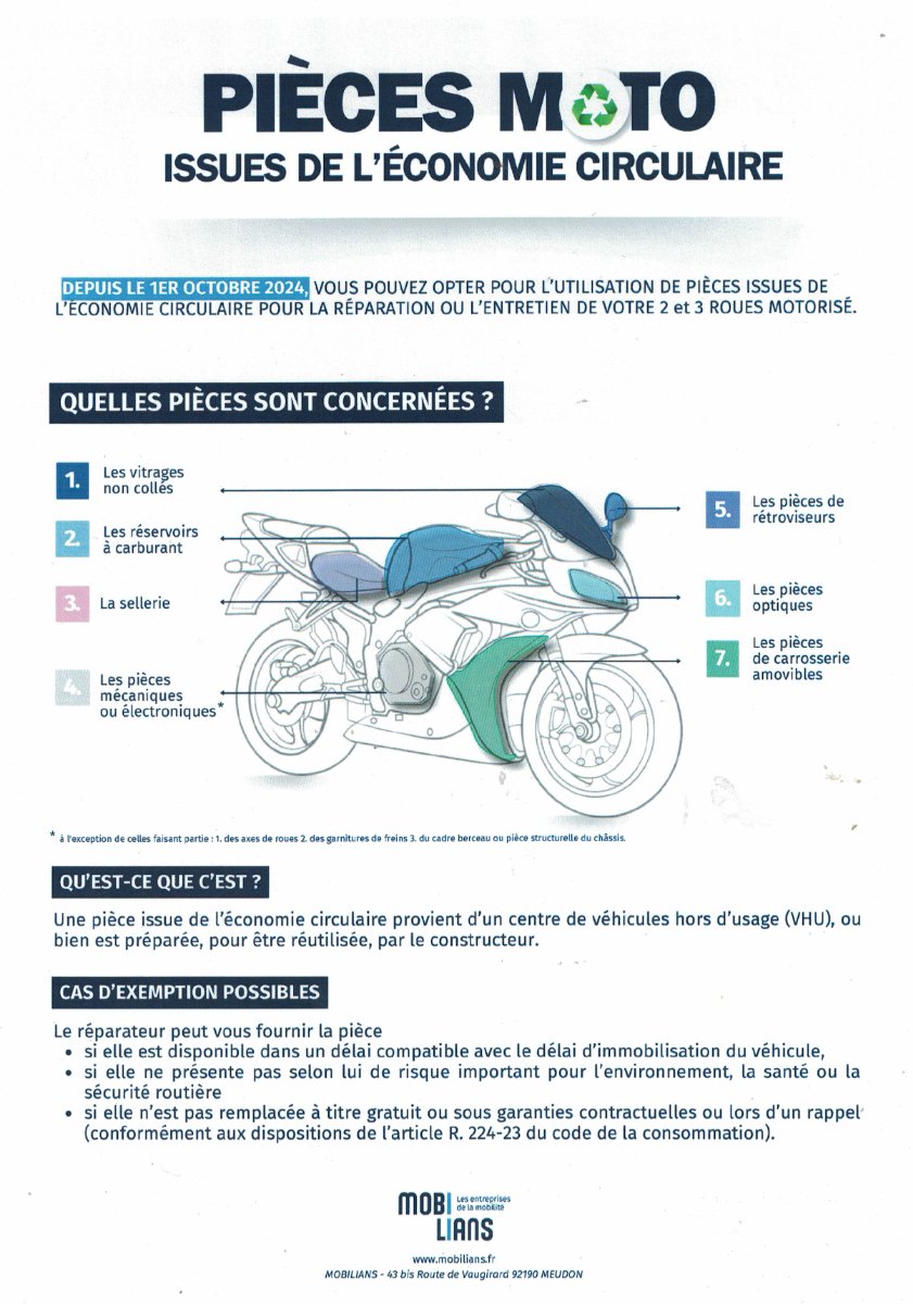 Moto de courtoisie avec participation, réservation au préalable auprès du service commercial.