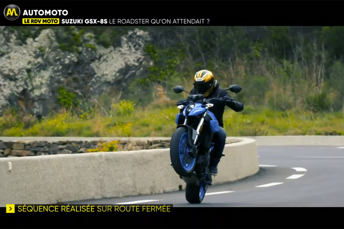 Le journaliste Bader Benlekehal a essayé la GSX-8S pour l’émission Automoto sur TF1. Diffusé le dimanche 23 avril 2023, le reportage de 5 minutes consacré au roadster a suscité de nombreux retours positifs et a captivé l’attention des téléspectateurs. Dans ce reportage, vous découvrirez les nombreuses fonctionnalités avancées de la GSX-8S comme son Traction Control ou même son Shifter Up&Down.