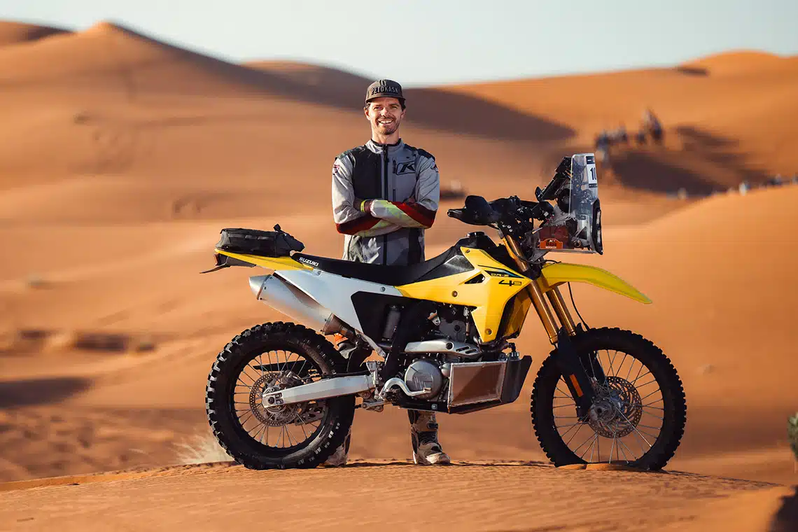 Le pilote Suzuki a annoncé sa participation au Dakar 2026, dans la catégorie Malle Moto (sans assistance). En attendant ce défi hors norme, il s’aligne sur la Baja Morocco 2025, au guidon de sa DR-Z4S, pour affûter sa machine et sa navigation.